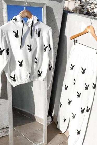 Conjunto Blanco Pantalon Jogger + Buzo Cropped